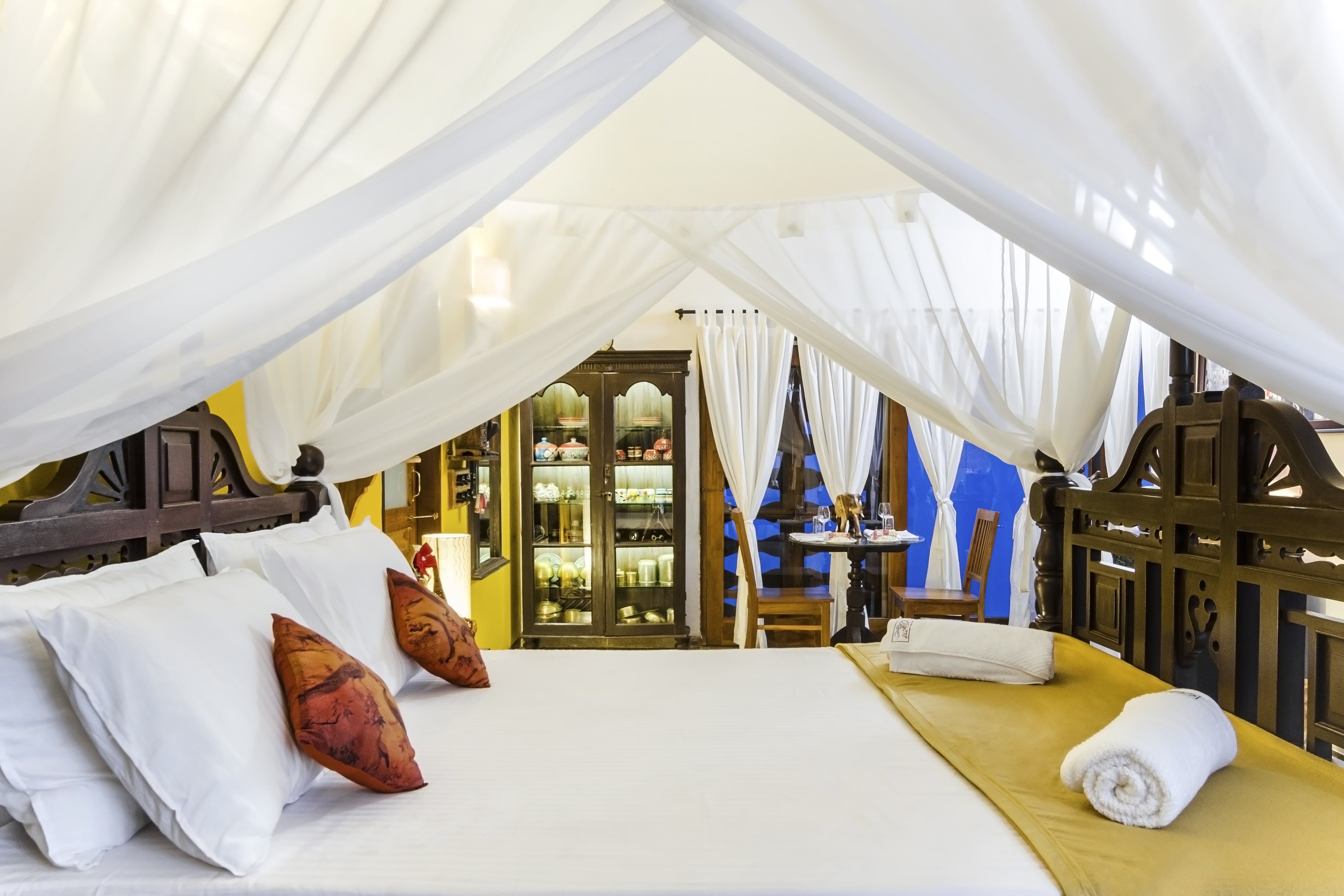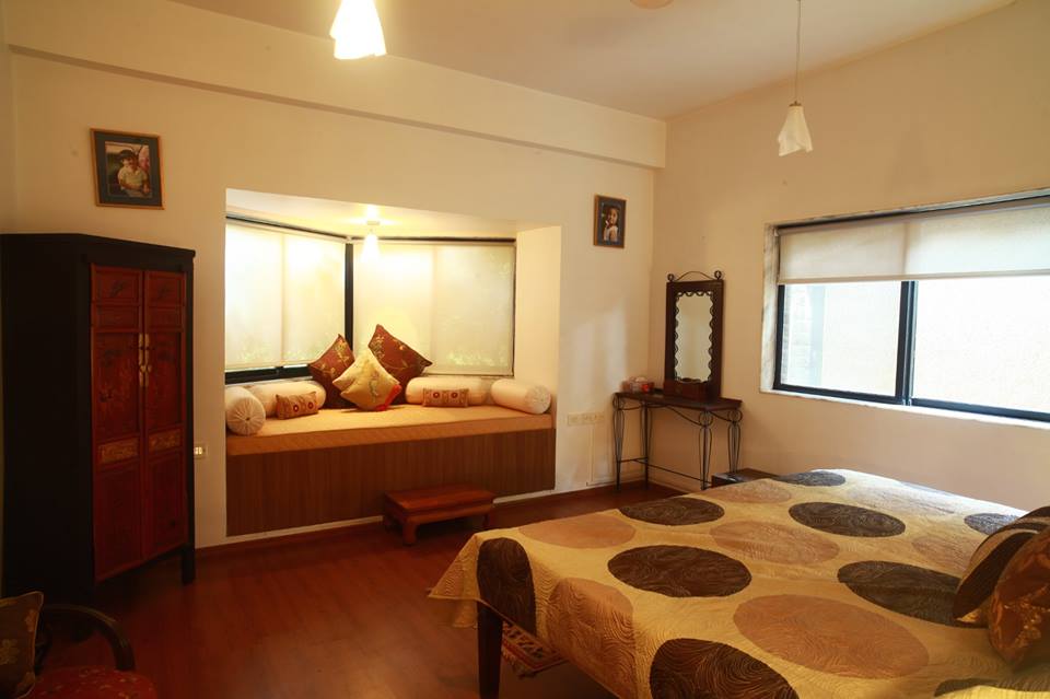 A heritage villa in Matheran, almost a 100 year old shelters some of the most amazing wall clocks, furniture, flooring, beds, wide windows, huge walls and colorful culinary. Every corner of the house speaks an emotion. If you wish to detox your mind with a good read, you will find this huge sofa with sunlight at its backdrop an apt place to be the couch potato for rest of the day!